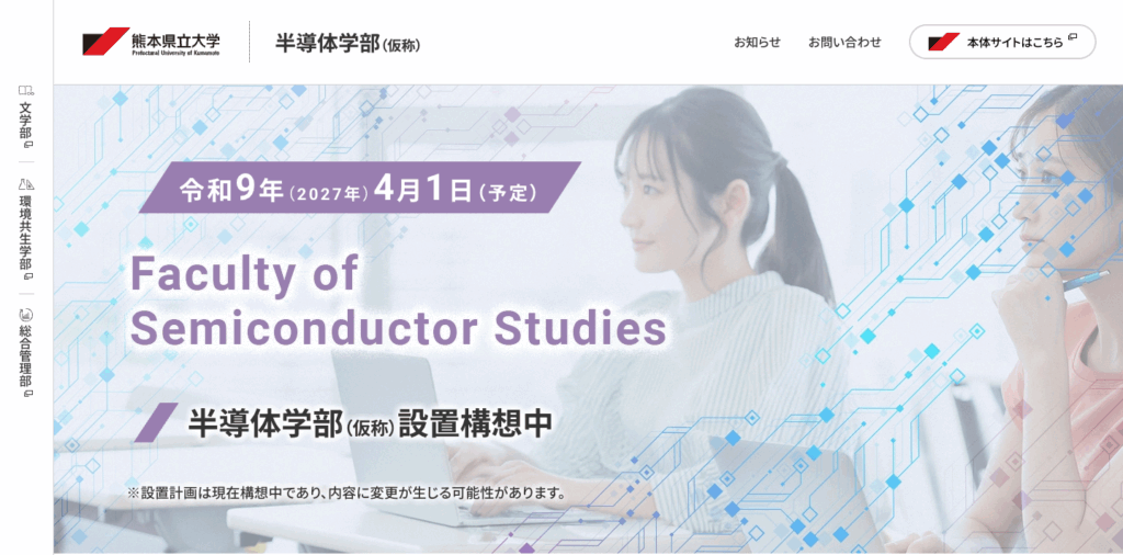 ホームページを開設いたしました。 2025.10.28.TUE この度、半導体学部(仮称)のホームページを開設いたしました。 学部の紹介や研究活動、最新ニュースなどをこれから発信していきます。ぜひチェックしてみてください! この記事をシェアする ページ送り 前の記事へ 次の記事へ 一覧へ戻る