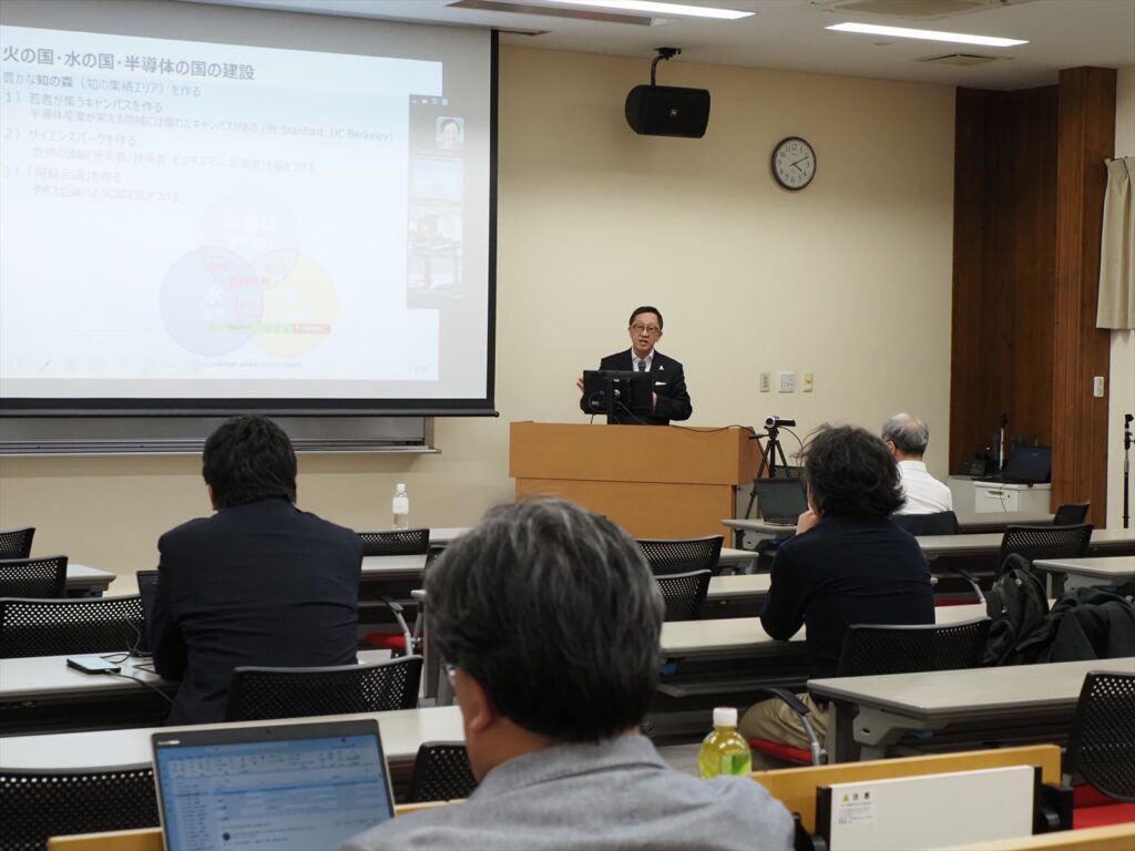 本シンポジウムは電子情報通信学会九州支部、電子情報通信学会リコンフィギャラブルシステム研究会、熊本県立大学が協賛しており、本学からは黒田忠広 理事長が「今、日本の半導体に必要なもの」と題して基調講演を行いました。